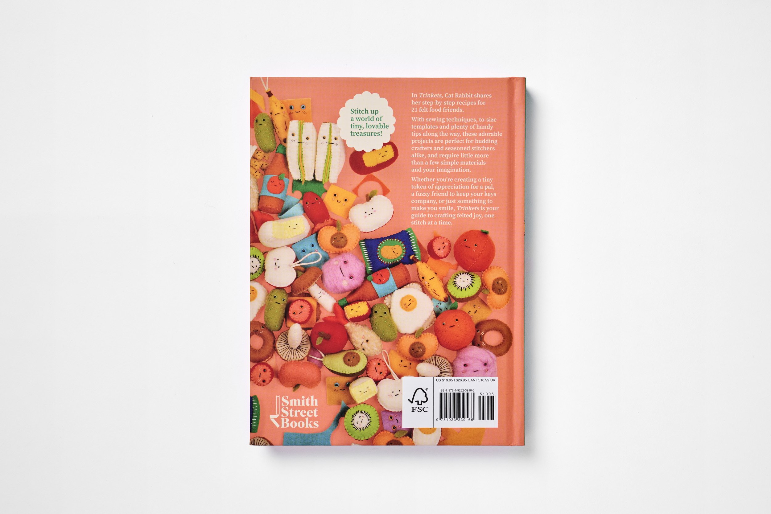 Trinkets invites you into a whimsical world of felt creations. With Cat Rabbit’s adorable, playful designs and step-by-step instructions, you’ll learn to make an assortment of charming felt food friends, from the fruit bowl to eggs three ways.