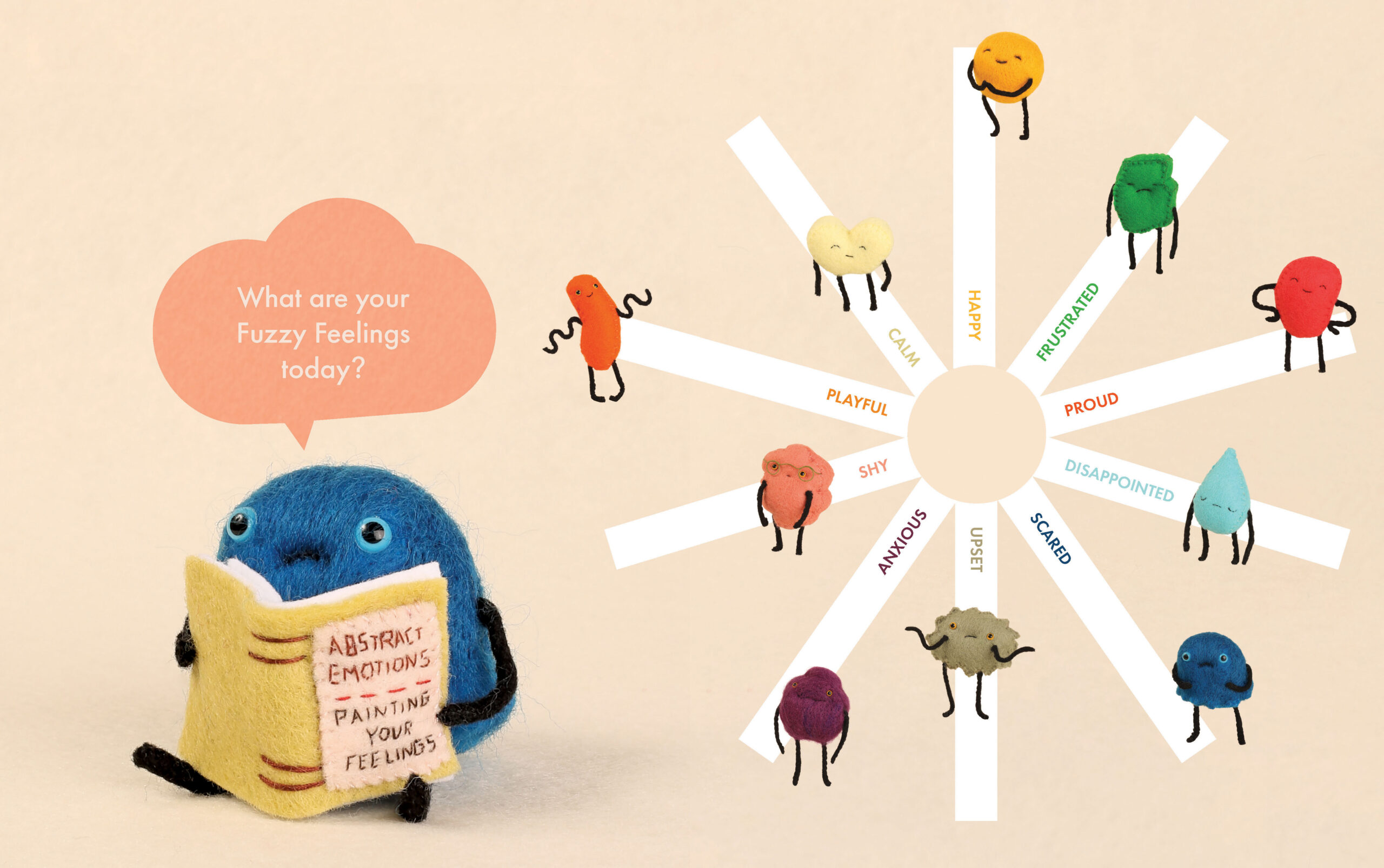 Fuzzy Feelings is the perfect jump-off point for parents, carers and teachers to talk to a child about how they are feeling. Created in felt, all lovingly hand-sewn by artist Cat Rabbit, this is a gentle guide to help children express themselves and navigate the big, wide world.