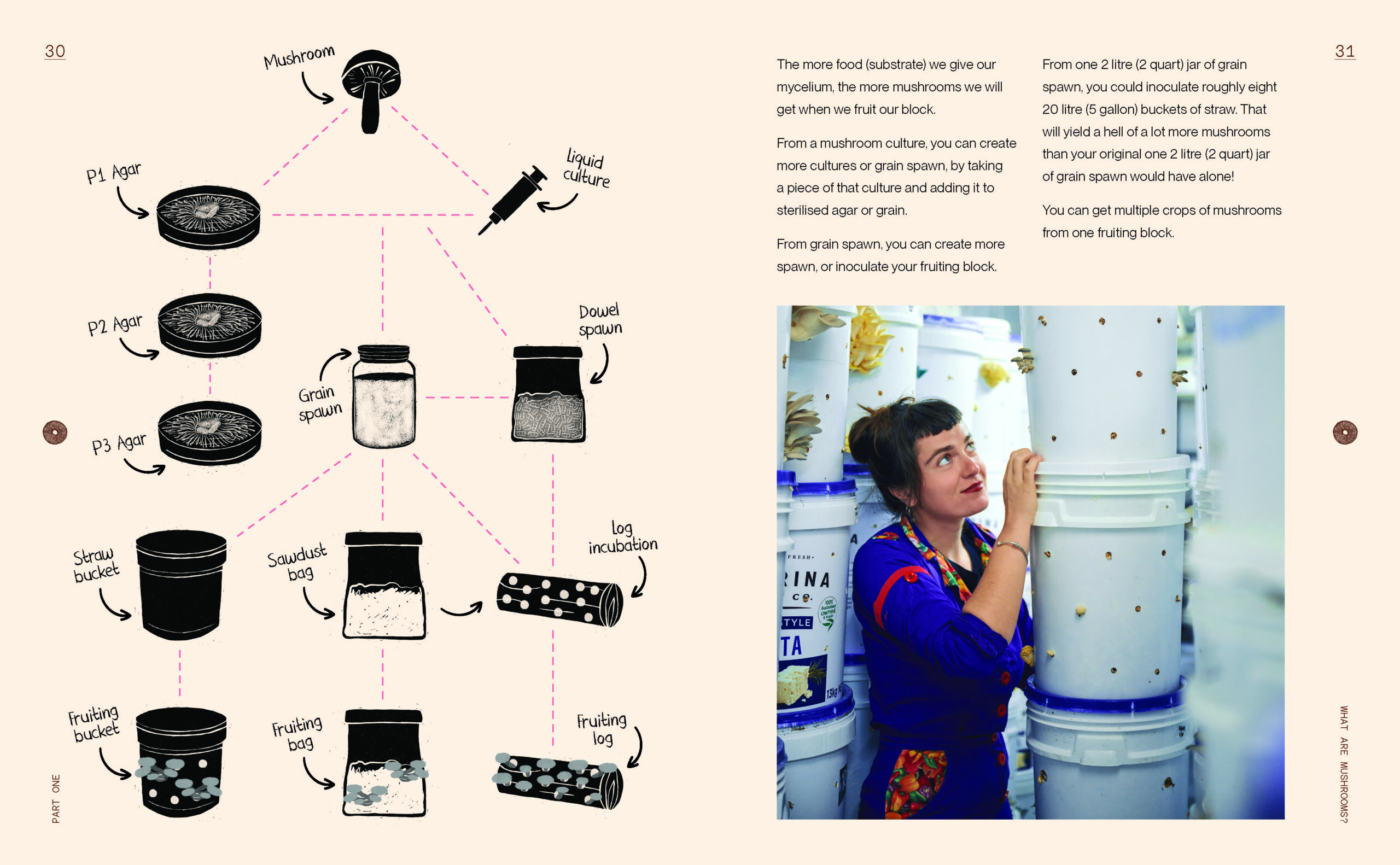 There is also information on fungi and its classification, the study of mycology, the life cycle of a mushroom and foraging. A handy glossary helps the reader navigate the world of mycology terms, as well as guidance on equipment and where to purchase it, ingredients – spores etc. – and sterilisation.